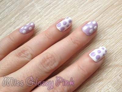 Ensuite, un ongle sur 2 de couleur différente. Et avec un dotting tool, quelques pois par ci par là. J’ai utilisé Nice is nice, un très joli mauve pastel et le Blanc d’Essie.