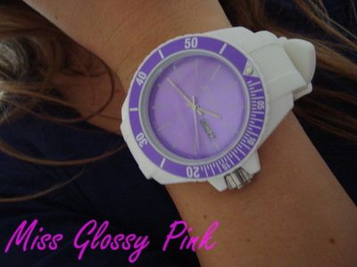 Et je suis tellement fan de la couleur que j’ai imaginé un petit nail art pour coller parfaitement avec ma montre : j’ai utilisé le vernis « purple dream » ELF (magnifique) + vernis blanc et plaque Konad.