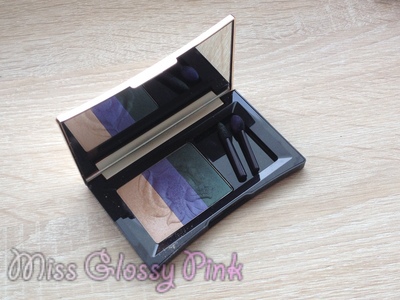 J’ai utilisé uniquement le vert et le beige en plus des produits du CCB. Je ne me maquille jamais en bleu, je trouve que ça ne me va pas. Cette palette est très jolie, elle possède un grand miroir, et 2 petits pinceaux. Je trouve le vert très beau. Niveau tenue, c’est autre chose : moyen mais je rappelle que je ne porte jamais de base.